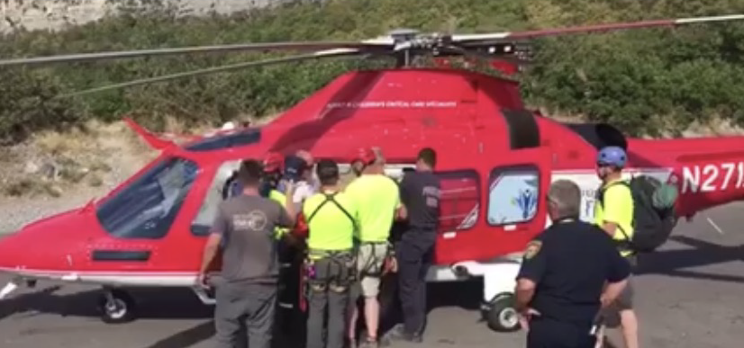 Shawn was flown to LDS hospital where X rays revealed a compression fracture to his T12 vertebrae and a little chip from another vertebrae. He has a sprained ankle, but has been spared any internal, spinal or brain damage. He was in the ICU last night, but after several CT scans and x rays, the doctors think his spinal injury will not require surgery and he may be released in a brace in several days. Thanks so much Alex, and all others who stopped to help. We are very grateful.